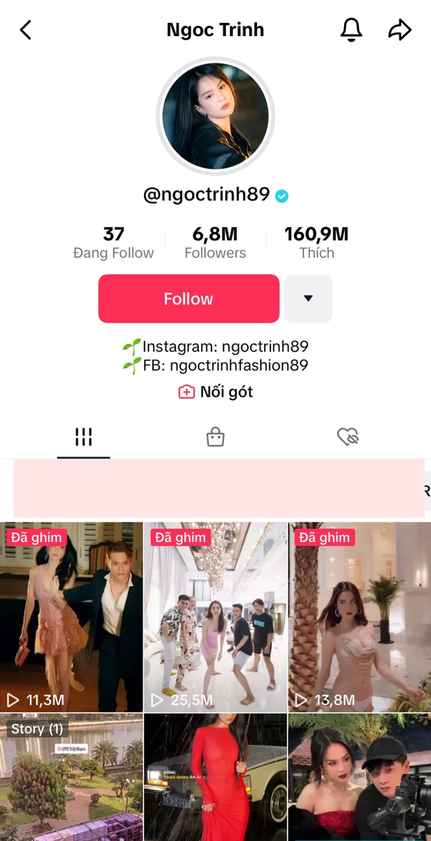 Tuy nhiên, trang TikTok có tích xanh tên "@ngoctrinh89", từng được Ngọc Trinh đăng tải loạt clip lái moto bị chỉ trích trước đó hiện vẫn còn hoạt động, bài đăng gần nhất là vào trưa 19/10. Thế nhưng, các clip có nội dung liên quan đến việc lái moto, bị tai nạn, đáp trả dân mạng,... của Ngọc Trinh trên kênh TikTok này đều đã được xoá bỏ hoặc ẩn đi, chế độ bình luận cũng được tắt.