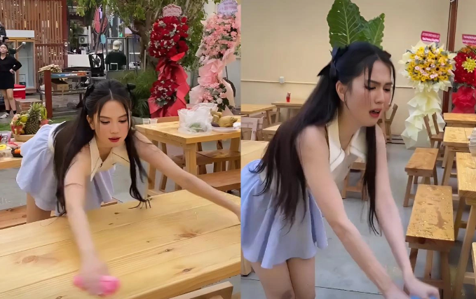 Đoạn clip Ngọc Trinh trải nghiệm lần đầu làm nhân viên phục vụ quán nhậu mới đây đã thu hút nhiều sự chú ý từ cộng đồng mạng. Theo đó, người đẹp xuất hiện trong trang phục gọn gàng, thực hiện thành thục những công việc của một nhân viên quán nhậu.