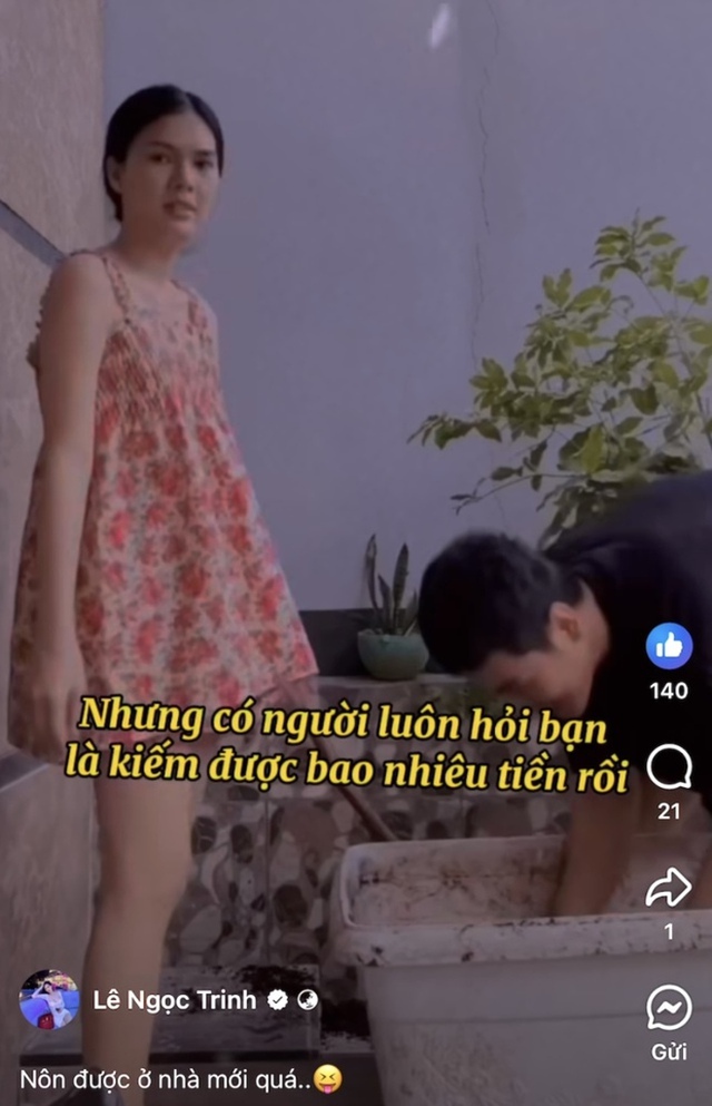 Vào ngày 12/5, Ngọc Trinh đã đăng tải video mới trên story trang cá nhân. Nữ diễn viên sinh năm 1996 chia sẻ clip quay từ phía sau khoảnh khắc bạn trai Thiên Tây mặc quần áo màu đen năng động thoải mái, đi lựa chọn hoa quả.