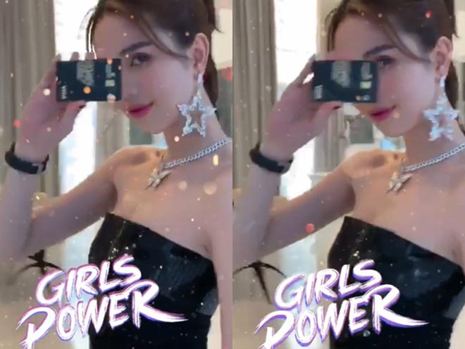 Không chỉ gây chú ý khi mặc bộ đầm ngắn bó sát đầy gợi cảm và bước ra từ thang máy có in hình riêng của mình, cô còn khiến cho nhiều người tò mò và bất ngờ khi cầm trên tay một chiếc thẻ visa (tín dụng - pv) màu đen.