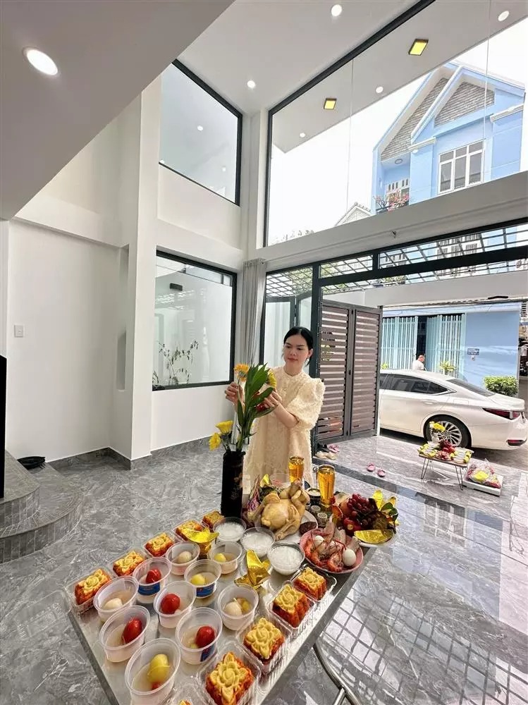 "Cúng tạ Đất cho căn nhà cuối cùng của năm nay đã hoàn thiện. Được nghỉ ngơi ăn Tết rồi bà con ơi", nữ diễn viên hào hứng viết kèm.