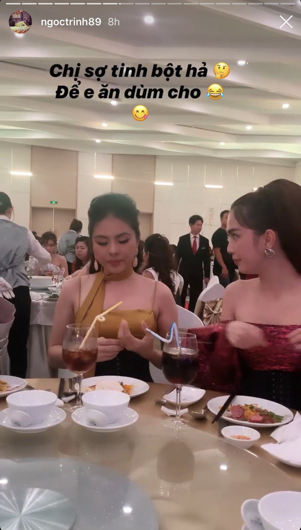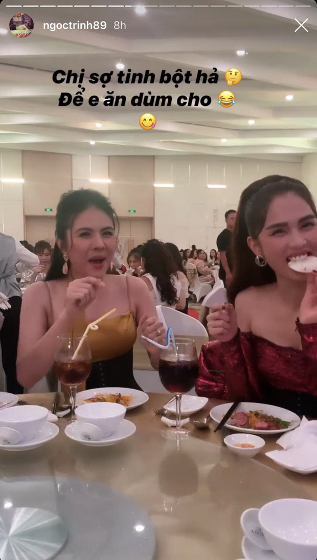 Cụ thể, trong một bữa tiệc, khi thấy Vân Trang ngồi bên cạnh vẫn để lại miếng phồng tôm mà không ăn, Ngọc Trinh đã thủ thỉ hỏi nhỏ, và ngay khi phát hiện cô chị Vân Trang không ăn, Trinh liền không ngại ngần mà... xin luôn.