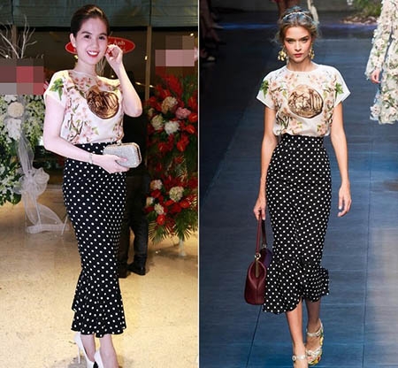 Cô thậm chí còn cho biết: "Thấy mẫu váy nào đẹp, Ngọc Trinh đều copy về may để mặc và bán", một tư duy hồn nhiên chẳng kém gì câu phát ngôn nổi tiếng "Không tiền thì cạp đất mà ăn à". Bởi là người hoạt động trong giới thời trang, Ngọc Trinh hẳn phải biết mỗi mẫu trang phục của các thương hiệu lớn là sản phẩm sở hữu trí tuệ của nhà thiết kế tạo ra nó. Thế nhưng cô vẫn hồn nhiên diện váy nhái mà không hề cảm thấy áy náy về bản quyền.