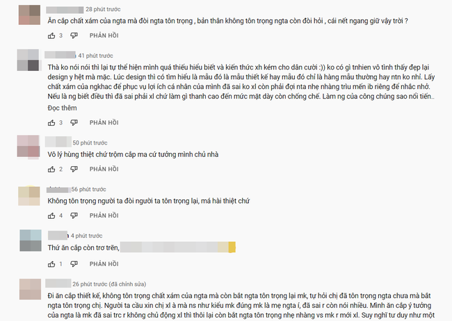 Nhiều dân mạng thể hiện sự bức xúc khi Ngọc Trinh là người sai nhưng vẫn mạnh miệng trách móc lại phía nhãn hàng bị cô đạo nhái thiết kế, lại còn thách thức ngược.