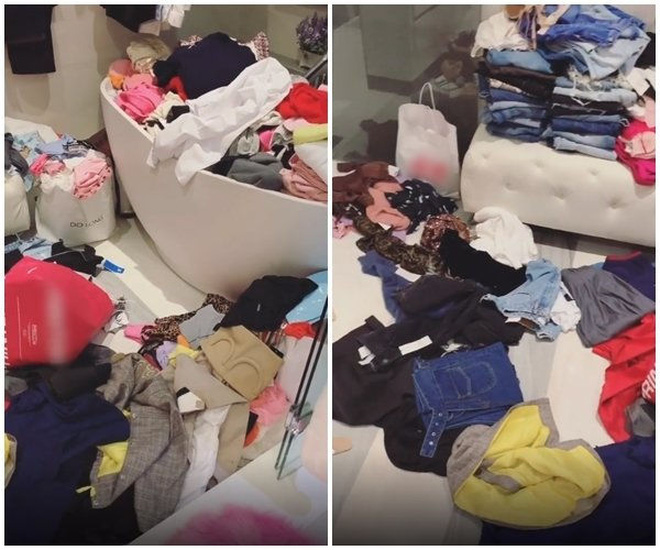 Mua được chiếc túi hiệu giá trăm triệu, đồng hồ mấy tỷ rồi váy vóc, giày dép toàn đồ hiệu ắt hẳn nhiều người sẽ dành ra cả 1 căn phòng lớn, bày biện lên kệ để trưng bày và không để xước 1 miếng, nhưng đó là ai chứ không phải Ngọc Trinh rồi. Mặc dù cũng tự khoe có căn phòng đồ hiệu giá triệu đô nhưng Ngọc Trinh lại thường xuyên gây chú ý vì bày đồ la liệt, bừa bộn dưới sàn nhà.
