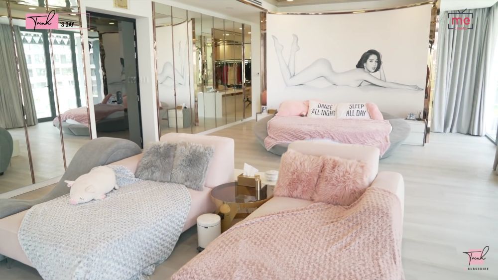 Biệt thự của Ngọc Trinh được thiết kế theo phong cách hiện đại, sang trọng. Phòng khách và khu vực bếp là nơi được Ngọc Trinh chăm chút kỹ nhất với nhiều nội thất cao cấp. Phòng ngủ của "Nữ hoàng nội y" có diện tích cực rộng, nối liền với khu vực trưng bày hàng hiệu và nơi trang điểm của cô. Đây là nơi mà Ngọc Trinh thường xuyên quay vlog và cũng là niềm ao ước của nhiều cô gái.