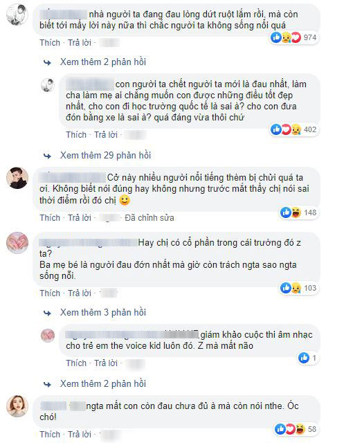 Người ta đã đau đến tận xương tủy vì mất con quá đột ngột vì sự tắc trách của ngôi trường quốc tế rồi, không nói được lời nào tốt đẹp thì tốt nhất nên im lặng chị ạ. Người lớn rồi cũng con có cháu rồi mà, chị thử đặt mình vào vị trí của cha mẹ đứa bé đi, xem chị có nói được những từ ngữ lạnh lùng đó không.