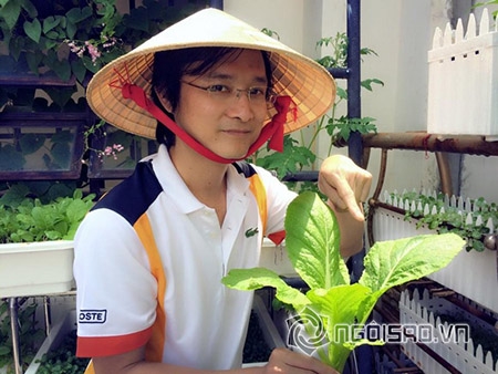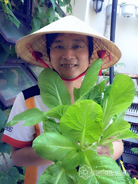 Nguyễn Nhất Huy khoe khéo vườn rau sạch tươi tốt trong nhà của anh |