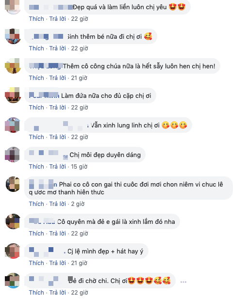 Dưới phần bình luận, đông đảo người hâm mộ cũng hy vọng Lệ Quyên sinh thêm con để gia đình đông vui khiến nữ ca sĩ cũng hào hứng: "Tinh thần động viên của cả nhà cao quá, Quyên cũng mong công chúa lắm". Khỏi phải nói, nếu Lệ Quyên gia nhập hội mẹ bầu Vbiz chắc cũng sành điệu và sang chảnh không kém ai đâu.