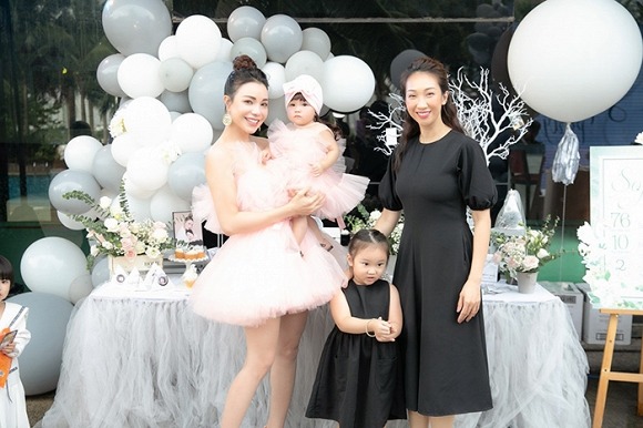 Có mặt tại bữa tiệc ấm cúng ngoài những người thân thiết trong gia đình còn có những người bạn của Trà Ngọc Hằng trong nghề như ca sĩ Lều Phương Anh, Lương Bằng Quang, siêu mẫu Trần Trung, Minh Anh, diễn viên Song Luân, MC Anh Quân... Mọi người đều dành những lời chúc tốt đẹp nhất đến mẹ con Trà Ngọc Hằng...