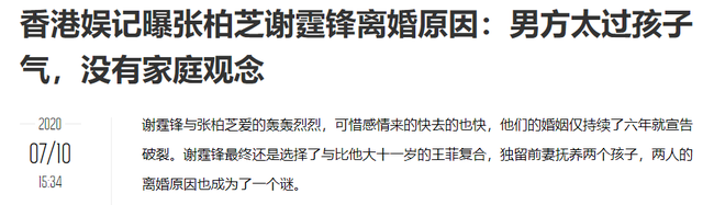 Mặc dù Tạ Đình Phong và Trương Bá Chi ly hôn đã lâu, trên mạng xã hội cũng có rất nhiều lời đồn đoán về nguyên nhân dẫn đến việc "đường ai nấy đi", thế nhưng điều này thực sự vẫn là một ẩn số. Mới đây, một nhân vật tầm cỡ trong làng giải trí xứ Cảng thơm đã bất ngờ lên tiếng về ẩn tình của cuộc hôn nhân không có hậu này.