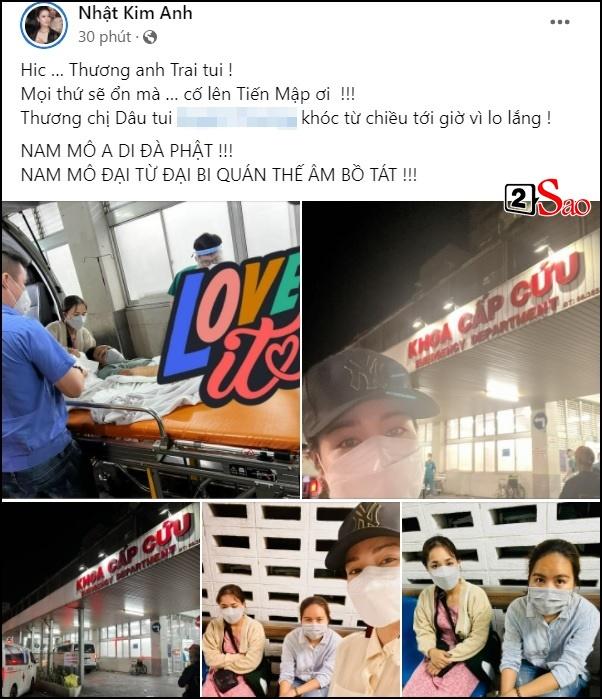 Cụ thể, Nhật Kim Anh chia sẻ: "Thương anh trai tôi! Mọi thứ sẽ ổn mà... Cố lên Tiến Mập ơi! Thương chị dâu tôi khóc từ chiều tới giờ vì lo lắng!". Cô không quên niệm Phật cầu an.