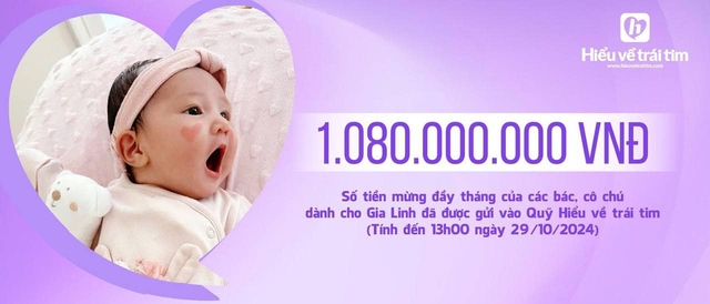Sau buổi tiệc xa hoa này, vợ kém 16 tuổi của Chi Bảo có thông báo khiến nhiều người bất ngờ. Cụ thể, nữ doanh nhân cho biết số tiền mừng mà quan khách, bạn bè gửi đến gia đình để chúc mừng 1 tháng tuổi của bé Gia Linh là 1,08 tỷ đồng.
