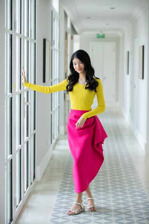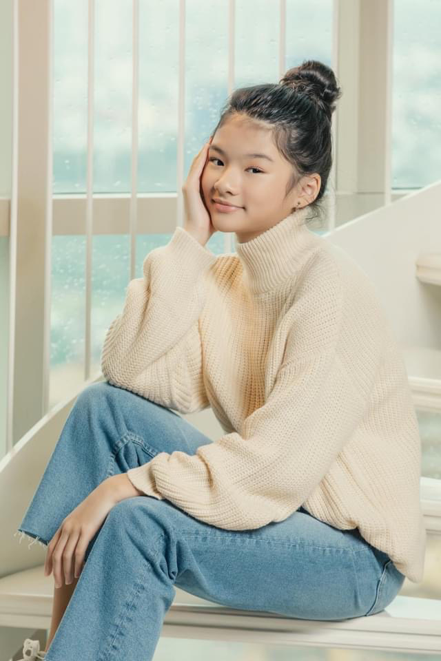 Ngồi ở chính giữa, con gái 13 tuổi của Trương Ngọc Ánh nhanh chóng chiếm trọn "spotlight" nhờ ngoại hình xinh đẹp và nổi bật. Mới 13 tuổi nhưng bé Bảo Tiên đã sở hữu chiều cao 1m59 cùng đôi chân dài miên man thẳng tắp. Mỗi lần tạo hình trước ống kính, cô bé trông như một người mẫu thực thụ.