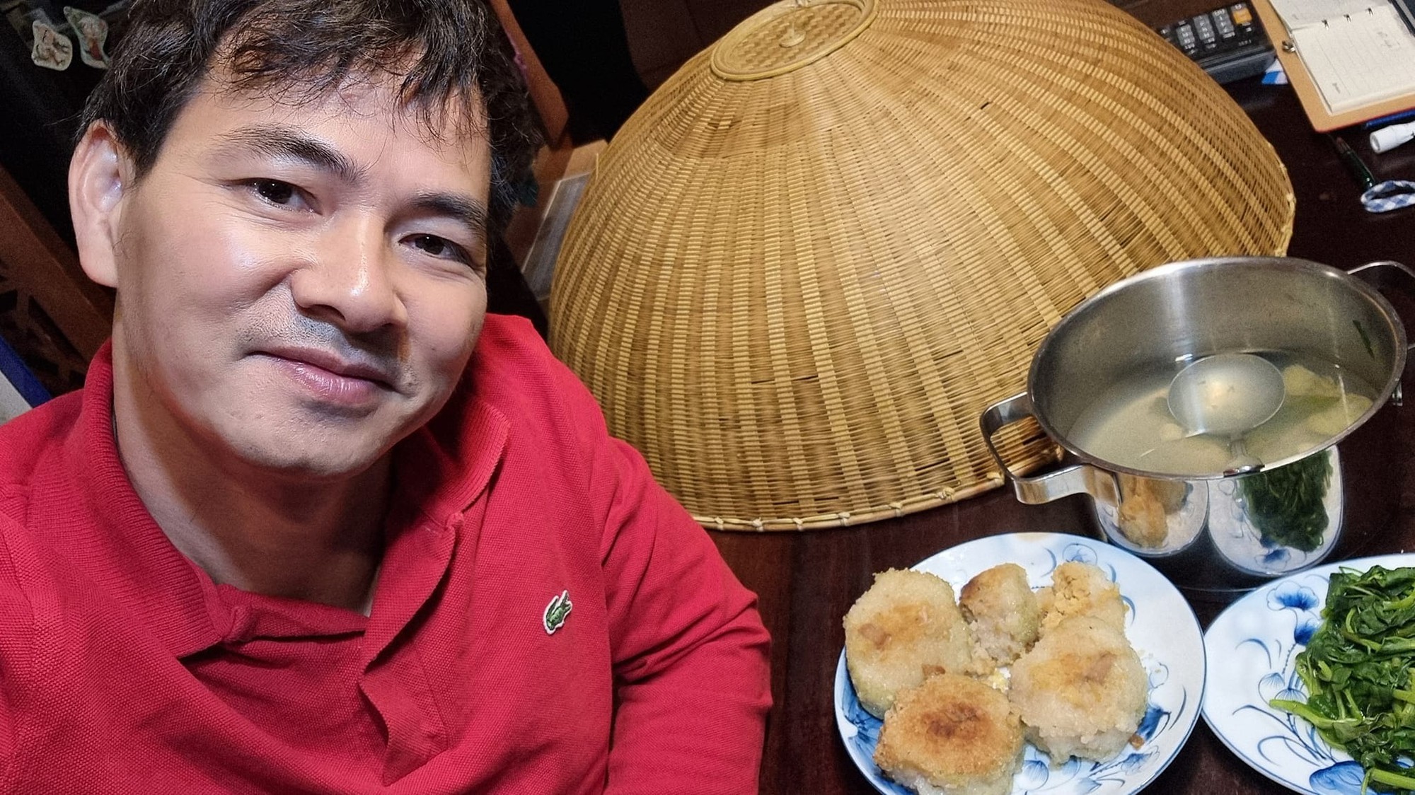 Mới đây, trên trang cá nhân, NSND Xuân Bắc chia sẻ hình ảnh mâm cơm bình dị lúc đêm muộn với cà bung và trứng rán. Anh còn dí dỏm làm thơ: “Bữa chiều chỉ thế này thôi. Cà bung, trứng rán cứ ngồi mà ăn. Công việc nào chả khó khăn. Bác sĩ đã dặn: Đừng ăn đêm nhiều. Mình cũng biết ăn đêm là béo. Đường huyết tăng, Cô rét tơ rôn. Ẩm thực như thế giờ hồn. Nhưng bụng đói quá... chẳng khôn cũng đành”.