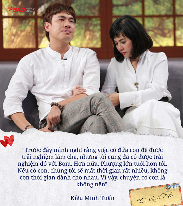 "Trước đây mình nghĩ rằng việc có đứa con để được trải nghiệm làm cha, nhưng tôi cũng đã có được trải nghiệm đó với Bom. Hơn nữa, Phượng lớn tuổi hơn tôi. Nếu có con, chúng tôi sẽ mất thời gian rất nhiều, không còn thời gian dành cho nhau. Vì vậy, chuyện có con là không nên".