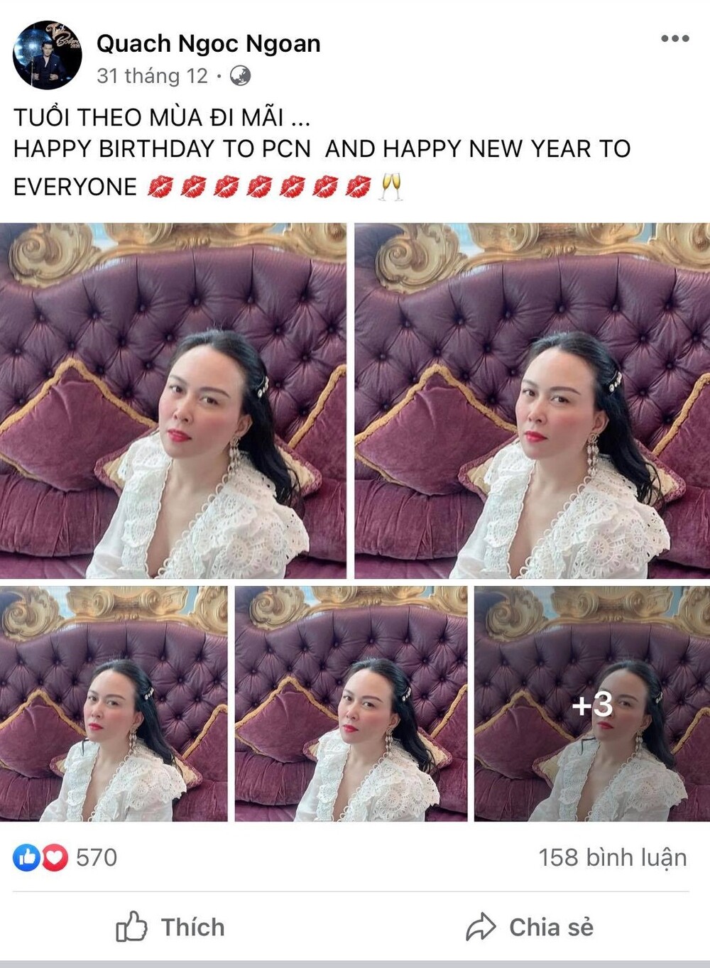 Trước đó trong khoảng thời gian 6 năm bên nhau, Quách Ngọc Ngoan thường xuyên chia sẻ hình ảnh của Phượng Chanel trên mạng xã hội kèm những lời ngôn tình ngọt ngào khiến khán giả nhiều lần ganh tị.