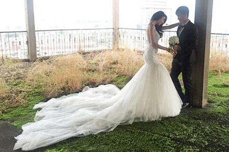 | Không chỉ thuận buồm xuôi gió trong sự nghiệp người mẫu, Lê Thúy còn khiến nhiều người ghen tỵ khi gặp được chàng Việt kiều Mỹ điển trai Đỗ Khải An. Cả 2 đã vừa tổ chức tiệc cưới tại Quảng Bình và TP.HCM. Ngất ngây trong hạnh phúc, Lê Thúy cho biết, vợ chồng cô có ý định sinh con luôn trong năm tới. |