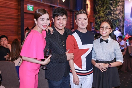 Đàm Vĩnh Hưng và Quang Lê hiện là hai trong số những ca sĩ được nhiều khán giả yêu thích. Tuy không thực sự thân thiết nhưng cả hai vẫn là đồng nghiệp. Họ vui vẻ khi gặp mặt nhau trong các buổi diễn hay các sự kiện giải trí. Trong ảnh, cả hai tới chúc mừng sinh nhật Lệ Quyên. |