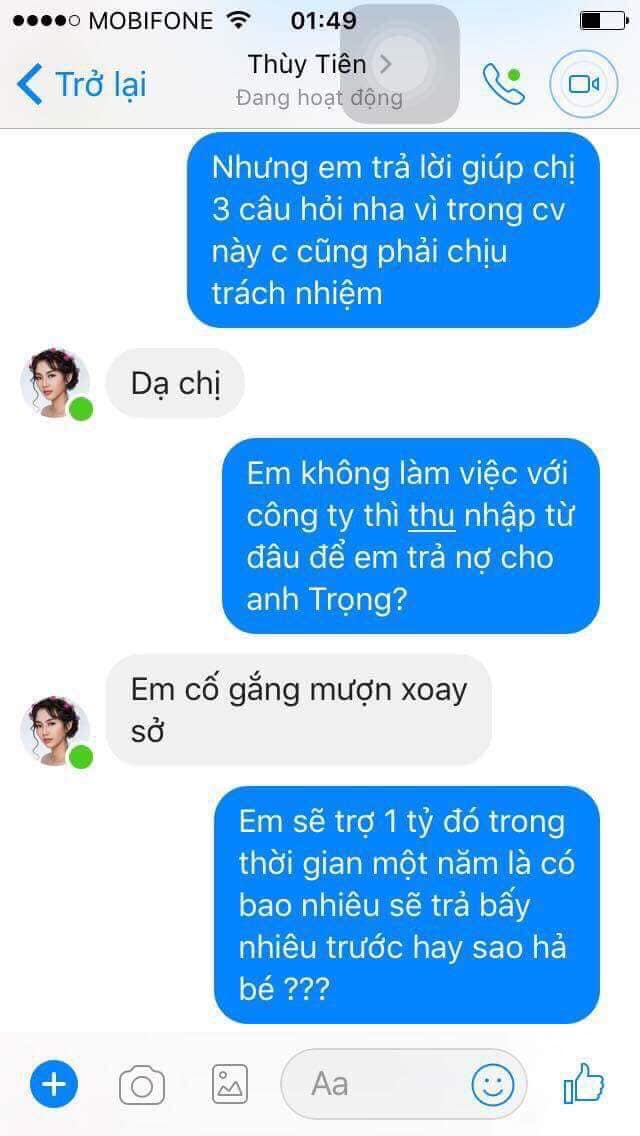 Ngoài ra, chị gái Đặng Thu Thảo còn tung tin nhắn Thùy Tiên xác nhận chuyện nợ cô 1,5 tỷ đồng và hứa sẽ cố gắng xoay sở để trả trong thời hạn 1 năm.