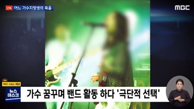 Được biết, Song vừa làm công việc bán thời gian vừa là thành viên ban nhạc, có tham vọng trong ngành giải trí. A là bạn trai cũ của cô, là ca sĩ kiêm nhạc sĩ nổi tiếng. Song đã tự tử và qua đời vào tháng 4 vừa qua. Cô để lại di thư viết rằng: "Người ta làm tôi tổn thương, đau đớn".