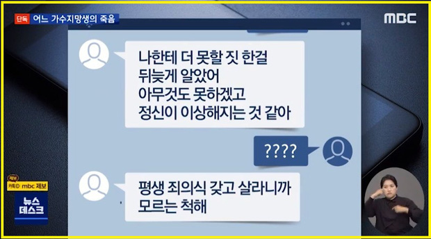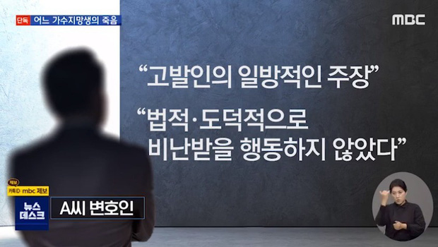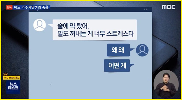 Vào tối nay (3/11), chương trình News Deck của đài MBC đưa tin gia đình của nữ ca sĩ quá cố họ Song đã đệ đơn kiện bạn trai cũ của cô (gọi tắt là A). Theo cáo trạng, gia đình Song tố cáo A đã chuốc thuốc, cưỡng bức nữ ca sĩ họ Song, ghi lại hình ảnh trái phép khiến cô suy sụp, nghĩ quẩn và tự tử.