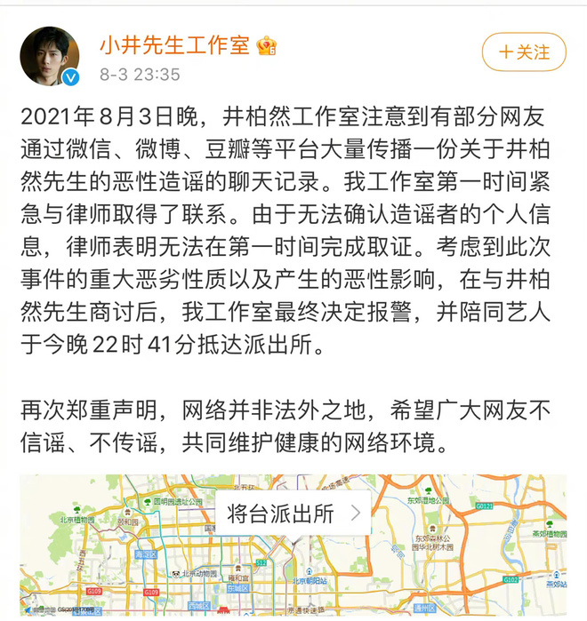 Cùng chung cảnh ngộ với Phạm Băng Băng, Tỉnh Bách Nhiên cũng là cái tên bị réo gọi trong buổi tối ngày 3/8. Nam diễn viên bị đồn thổi sử dụng ma tuý và dính líu tới scandal của Ngô Diệc Phàm. Nhanh nhẹn chẳng kém gì nữ hoàng họ Phạm, studio của Tỉnh Bách Nhiên tuyên bố họ đã báo luật sư và cảnh sát gấp về vụ việc.