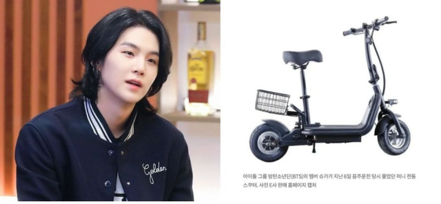 Vào lúc 23h10, nam idol đi ngang qua 3 cảnh sát chống bạo động đang tuần tra trên vỉa hè khu Nine One Hannam ở quận Yongsan, Seoul. Thành viên BTS bị mất trọng tâm và ngã khi rẽ trái vào cổng chính khu Nine One Hannam. Mũ bảo hiểm của anh bị văng ra đường. 3 cảnh sát đã tiếp cận Suga và đưa nam idol lên đồn.