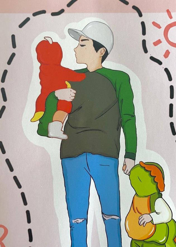 Không chỉ vậy, Trương Hằng còn chia sẻ thêm bức ảnh ghi vẽ lại khoảnh khắc anh ôm và nắm tay 2 đứa con, chính thức xác nhận mình trở thành ông bố toàn quyền nuôi Luca và Luna.