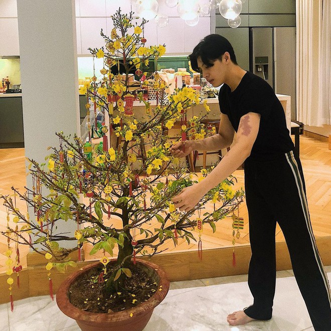 Không chỉ năm nay mà Tết nào, Noo Phước Thịnh cũng cùng mẹ trang hoàng nhà cửa đón năm mới. Mỗi năm, căn nhà của nam ca sĩ sinh năm 1988 lại đựơc tô điểm bằng những loại hoa khác nhau, có năm là tuyết mai trắng, hoa huệ đỏ, năm lại là hoa mai vàng rực một góc nhà. Phải công nhận rằng, những bình hoa tươi thắm đã giúp căn biệt thự rộng rãi của Noo Phước Thịnh trở nên sinh động và ngập tràn sắc màu hơn bao giờ hết.