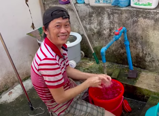 Trong lúc mở nước tắm ngay ngoài sân, thậm chí không cần xà bông, NS Hoài Linh vui vẻ hồi tưởng lại quá khứ: "Ngày xưa làm gì có nước này mà tắm, đi lội về xong cứ múc nước giếng lên xả vào người. Tôi thích tắm như thế này, phê lắm, chứ đâu cần nhà tắm, vòi sen gì đâu. Hồi xưa tôi vẫn làm như vậy, chứ làm gì có xà bông mà dùng".