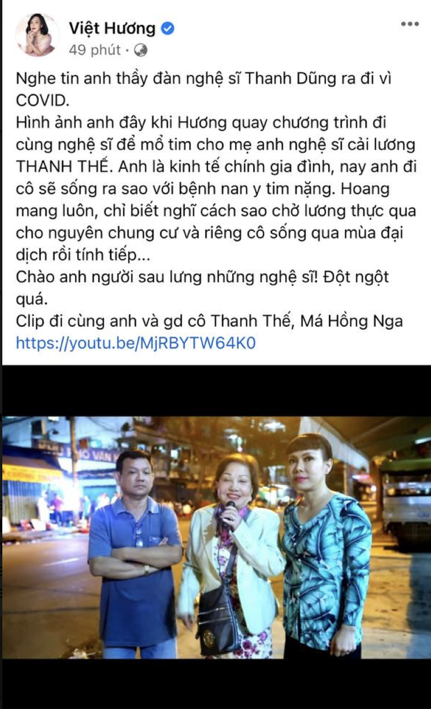 24/08/2021 13:24NS Thanh Dũng qua đời vì Covid-19, Việt Hương - Gia Bảo gửi lời tiếc thương