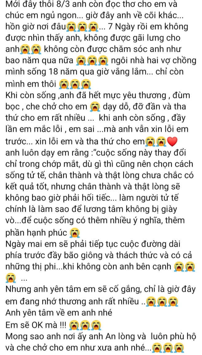 Mới đây thôi, ngày 8/3 anh còn đọc thơ cho em và chúc em ngủ ngon. Vậy mà giờ đây anh về cõi khác, hồn giờ nơi đâu?