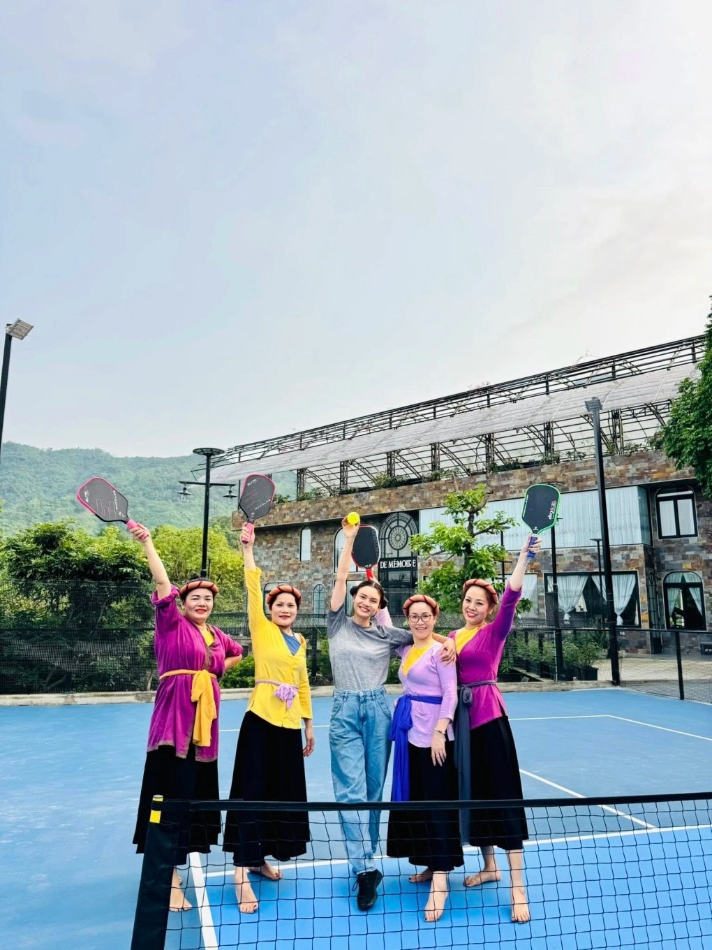 Dù bận rộn chưa có thời gian trực tiếp ra sân, nhưng khu vực này đã nhanh chóng trở thành điểm đến yêu thích của bạn bè, người thân. Thậm chí, sân chơi còn là nơi tổ chức các giải đấu mini kết hợp nghỉ dưỡng cuối tuần cho khách lưu trú tại khu homestay thuộc quần thể biệt phủ của gia đình cô.