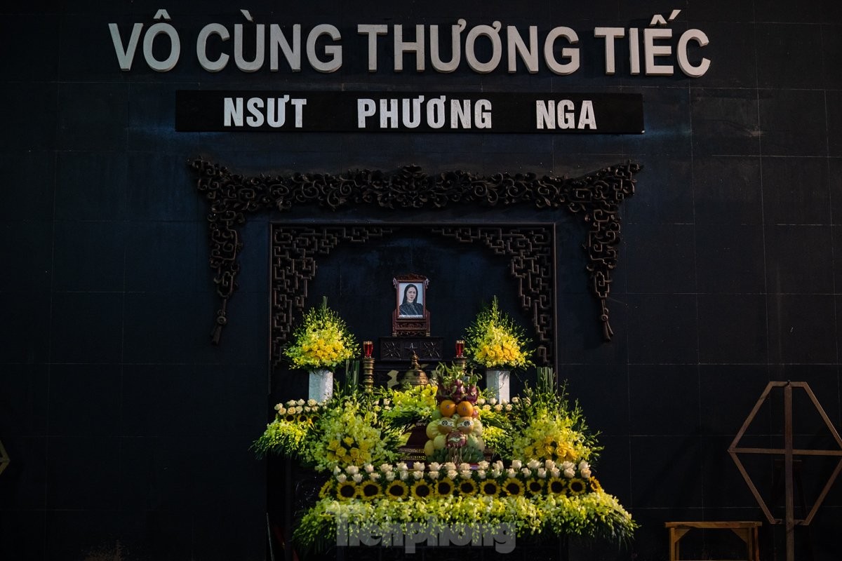 Đông đảo người thân, bạn bè, đồng nghiệp có mặt để tiễn biệt nữ nghệ sĩ - một người tài năng, đức độ nhưng lại rời cõi tạm quá sớm. Lễ tang do gia đình nghệ sĩ Bùi Phương Nga và Nhà hát Kịch Việt Nam thực hiện. NSND Tự Long, NSND Xuân Bắc, NSND Lan Hương và nhiều diễn viên tiếc nuối nói lời tạm biệt đồng nghiệp, đàn em thân thiết.