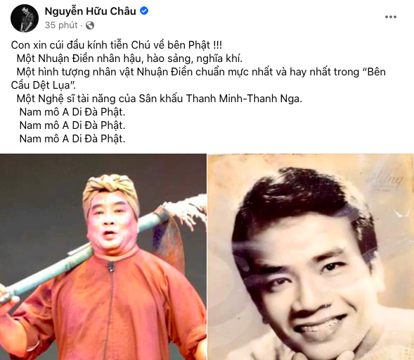 Sự ra đi của nam nghệ sĩ để lại nhiều tiếc thương cho giới đồng nghiệp lẫn khán giả. Trên trang cá nhân, NSƯT Hữu Châu xúc động viết lời tiễn biệt: "Con xin cúi đầu kính tiễn chú về bên Phật! Một Nhuận Điền nhân hậu, hào sảng, nghĩa khí. Một hình tượng nhân vật Nhuận Điền chuẩn mực nhất và hay nhất trong Bên Cầu Dệt Lụa. Một nghệ sĩ tài năng của sân khấu Thanh Minh - Thanh Nga".