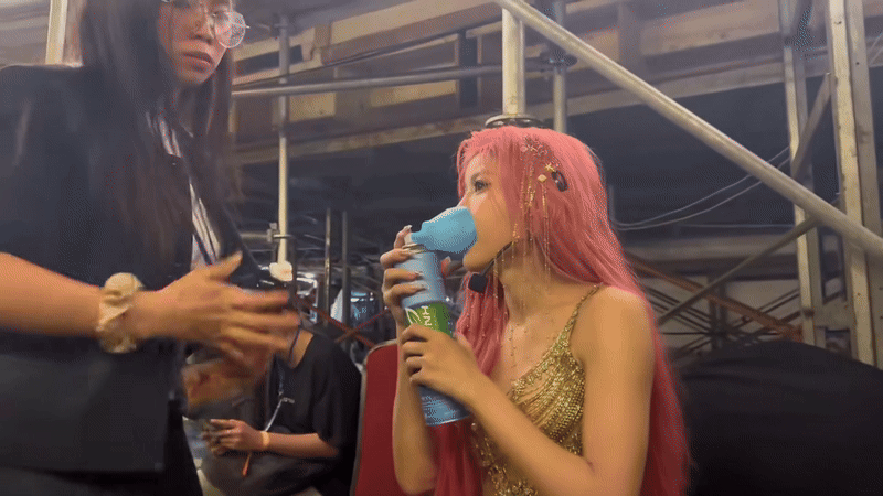 Trong buổi concert Chị Đẹp cross-over 2 mùa vừa qua, Trang Pháp có tổng cộng 9 sân khấu, số lượng nhiều hơn trung bình 48 Chị Đẹp. Đặc biệt, khi vừa kết thúc Lý Kéo Chài , Trang Pháp phải chuẩn bị luôn cho tiết mục Tôi Yêu Người Việt Nam Này , sau đó là liên tục 3 ca khúc đòi hỏi thể lực gồm Hot, Chỉ Là và Đường Cong , múa ghế hay đu cột đều cân đẹp. Chạy đi chạy lại trong khoảng thời gian ngắn, Trang Pháp được ekip chuẩn bị sẵn bình thở oxy hỗ trợ lấy lại sức. Trên sân khấu, Chị Đẹp tóc hồng giấu toàn bộ sự mệt mỏi và thể hiện hết mình, từ chơi nhiều loại nhạc cụ, trưng trổ khả năng trình diễn, vũ đạo và vocal.