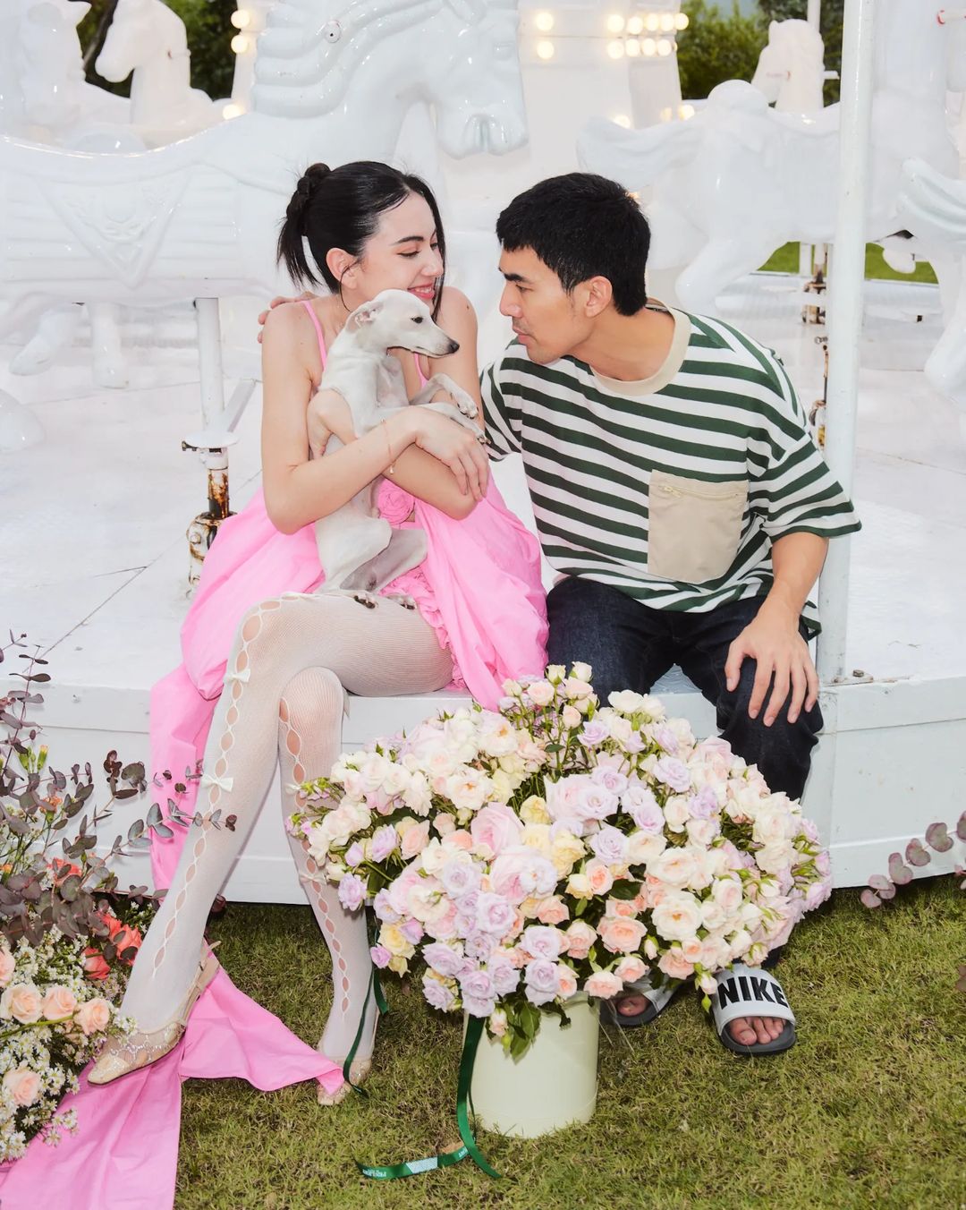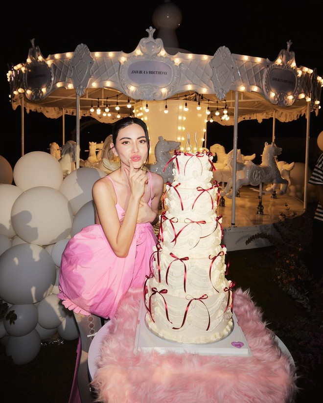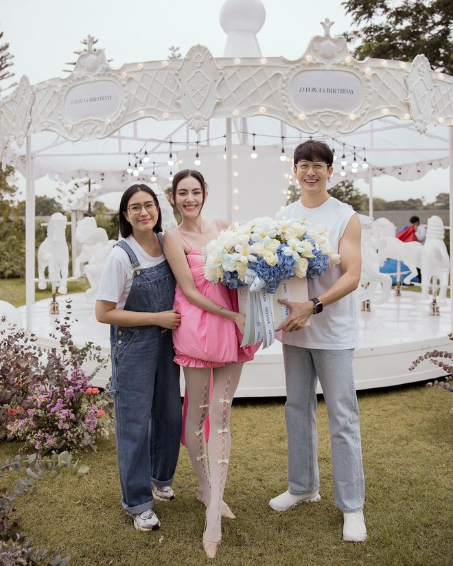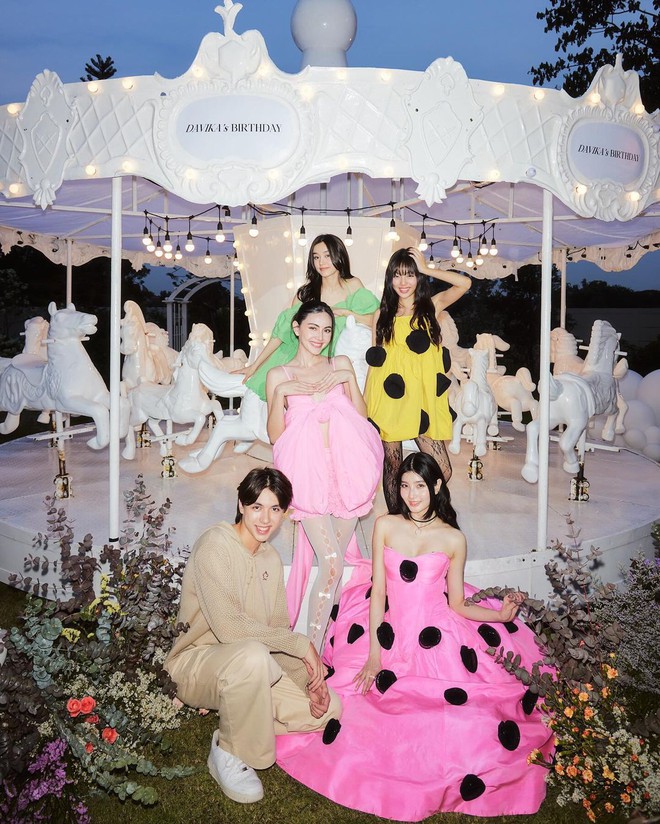 Đáng chú ý, trong những hình ảnh được chia sẻ, Mai Davika khoe trọn nhan sắc xinh đẹp cùng vóc dáng quyến rũ khi diện bộ đầm hồng được thiết kế độc đáo. Bên cạnh đó, mỹ nhân 9X còn nở nụ cười tươi rạng rỡ khi đón tuổi mới bên những người thân thiết. Được biết, rất nhiều ngôi sao hàng đầu Tbiz đã đến dự sinh nhật của ma nữ đẹp nhất Thái Lan như: Mint Chalida, Mew Nittha, Margie Rasri, vợ chồng Push Puttichai - Jooy Warattaya… Đặc biệt, không thể không nhắc đến bạn trai gần 7 năm của Mai Davika - Ter Chantavit cũng xuất hiện trong tiệc sinh nhật của bạn gái xinh đẹp.