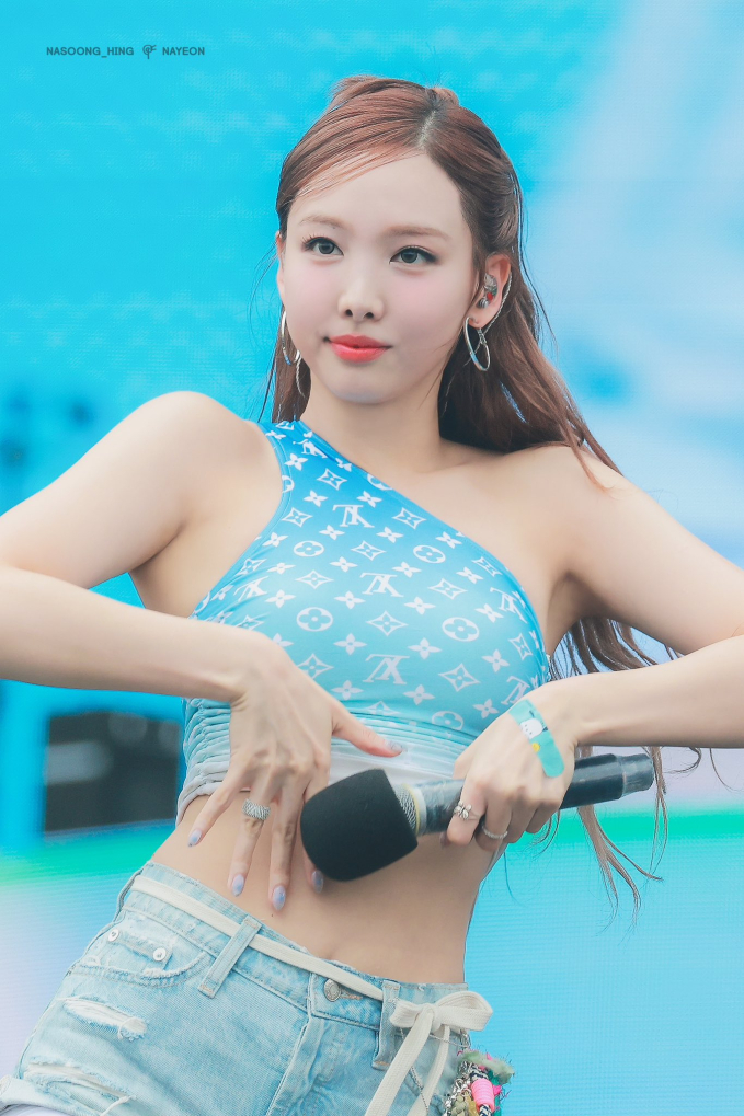 Để hoà mình vào lễ hội nhạc nước hot nhất nhì thế giới này, Nayeon đã được stylist biến tấu một chiếc áo tắm của thương hiệu nổi tiếng để trở thành chiếc áo khoe eo. Tuy nhiên, ở một vài góc quay, cư dân mạng phát hiện ngoại hình có phần khác lạ của chị cả TWICE. Thậm chí, có người còn đề nghị Nayeon nên chịu khó tập thể dục hơn.