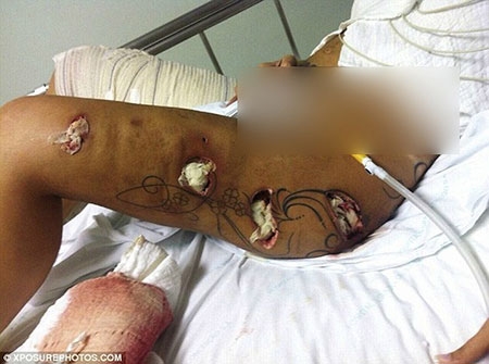 ![]() ![]() ![]() Đôi chân của cô thủng lỗ chỗ vì bị mục nát đáng sợ |
