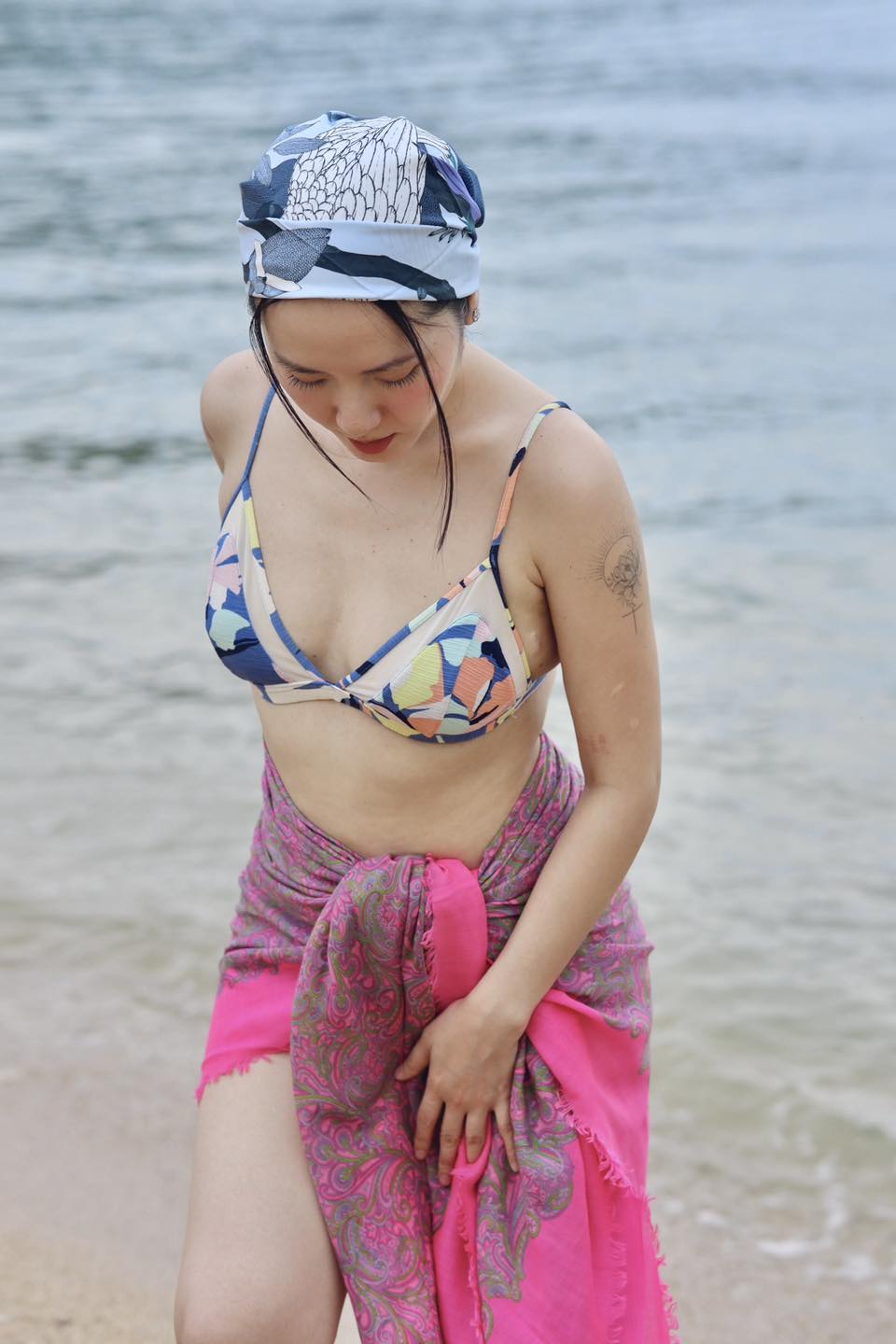 Mới đây, nữ ca sĩ thu hút sự chú ý khi khoe loạt ảnh diện bikini táo bạo trong kỳ nghỉ dưỡng. Cô khoác lên mình bộ bikini họa tiết trẻ trung phối cùng khăn choàng hồng nổi bật, đầu quấn khăn lụa đầy phong cách và tay xách chiếc túi mini hàng hiệu. Dù trang phục khá đơn giản, nhưng thần thái tự tin đã giúp cô toát lên vẻ quyến rũ và sang trọng rất riêng.