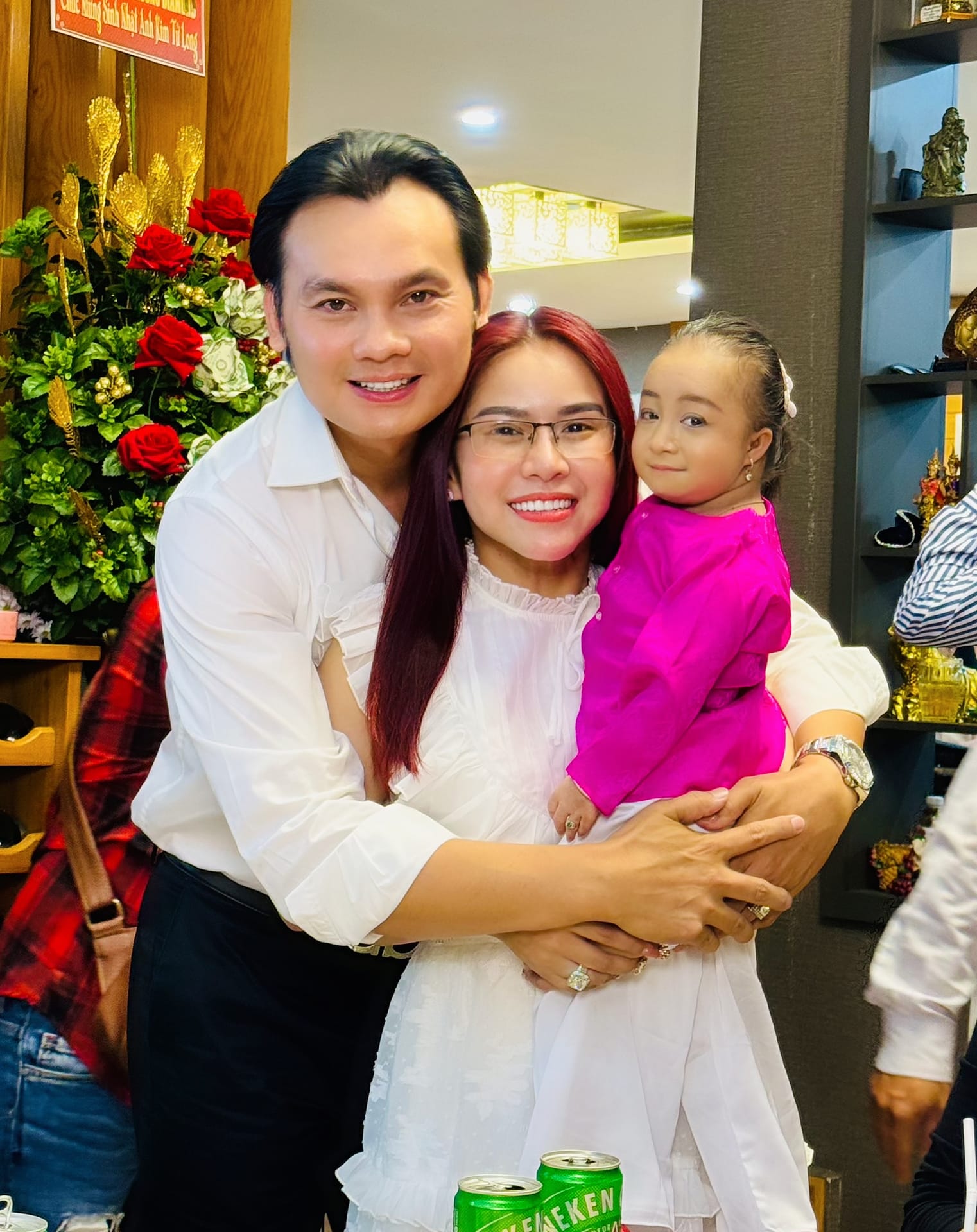 Được biết, con gái nuôi nghệ sĩ Bình Tinh cũng là con nuôi của NSƯT Kim Tiểu Long tên thật là Kim Ly. Kim Ly sinh non, lúc chào đời chỉ nặng 800 gram và sống cùng bà ngoại ở Vĩnh Long. Dù 23 tuổi nhưng Kim Ly chỉ cao 75cm và nặng 8,8kg.