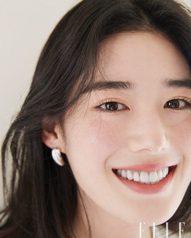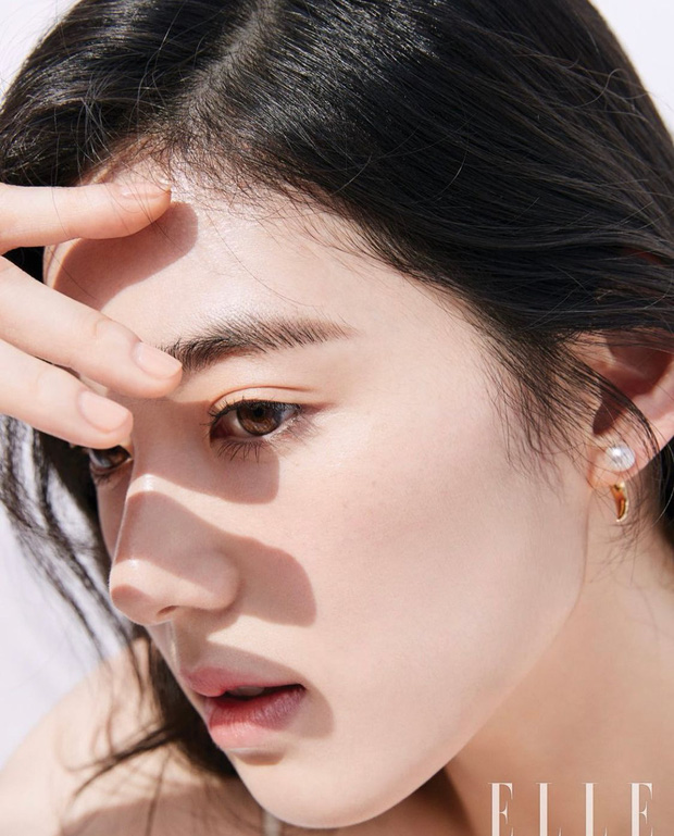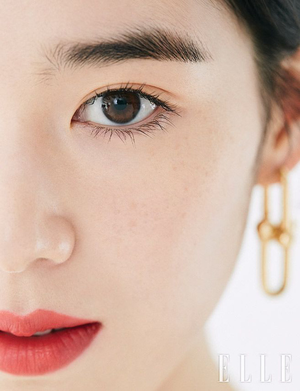 Mới đây, loạt ảnh chụp siêu cận mặt của Jung Eun Chae khi xuất hiện trên bìa tạp chí Elle đã trở thành chủ đề nóng trên mạng xã hội. Vốn dĩ nhan sắc của cô đã được xếp vào hàng cực phẩm của làng giải trí xứ củ sâm nên dù có chụp siêu cận, zoom vào từng lỗ chân lông thì những đường nét như tượng tạc của nàng Thủ tướng vẫn khiến dân tình "điên đảo".
