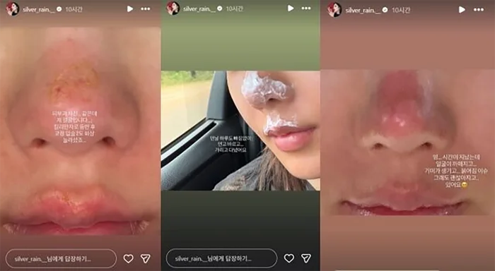 Mới đây, nữ ca sĩ Kwon Eun Bi đã chia sẻ trên trang cá nhân tình trạng làn da bị tổn thương nặng nề sau chuyến leo núi Kilimanjaro. Thay vì vẻ ngoài rạng rỡ thường thấy, "nữ thần Waterbomb" xuất hiện với vùng mũi và môi bị bong tróc, đỏ rát nghiêm trọng.