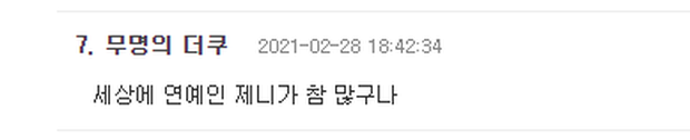 Hóa ra, cô dâu tháng 3 ở đây là Jenny, thành viên nhóm nhạc Gavy NJ. Gavy NJ là nhóm nhạc kỳ cựu, debut từ năm 2005, tuy nhiên không nổi tiếng toàn cầu và không thể bằng được nhóm nhạc nữ hàng đầu Kpop hiện nay là BLACKPINK. Jenny và Jennie tuy khác nhau về cách viết tiếng Anh nhưng lại giống nhau trong tiếng Hàn (제니). Có vẻ như quá nhiều người (bao gồm cả netizen Hàn và fan quốc tế) đã tưởng rằng nhân vật đó chính là Jennie (BLACKPINK) nên tình cờ đưa bài báo này đứng đầu cổng thông tin Naver suốt cả tối ngày 28/2.