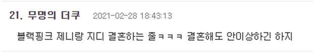 Cả tối đến tận đêm ngày 28/2, đứng top 1 cổng thông tin Naver chính là bài báo có tựa đề "Jennie trở thành cô dâu tháng 3". Bài báo này khiến dân tình không khỏi hốt hoảng và ngay lập tức réo tên thành viên BLACKPINK với câu hỏi: Chẳng lẽ mới bị Dispatch "khui" hẹn hò được mấy ngày, Jennie (BLACKPINK) đã vội vã muốn theo G-Dragon về chung 1 nhà?
