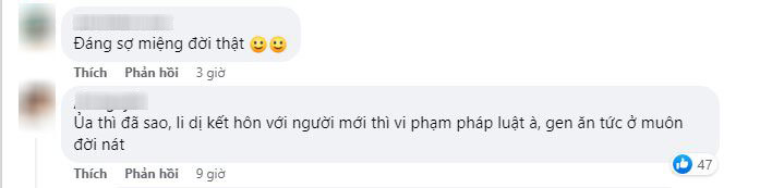 - "Ủa thì đã sao, li dị kết hôn với người mới thì vi phạm pháp luật à, ghen ăn tức ở muôn đời nát"