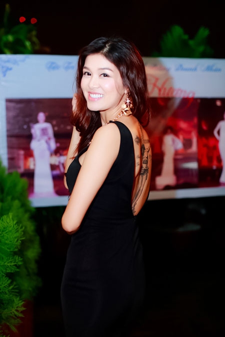 Tại sự kiện, Oanh Yến để lộ khoảng da thịt đầy hình xăm. |