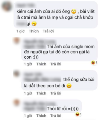 Ngay lập tức một người đã vào nhắc nhở người dùng này về việc dùng ảnh thì người này đã ngay lập tức khẳng định nhân vật single mom mà nhắc trong bài viết chính là Maya. Thậm chí, khi được nhắc về việc nội dung trong bài thì nói rằng single mom này có con trai trong khi con của Maya là con gái thì người này còn "chống chế" và nói rằng kệ vì "lỡ rồi".