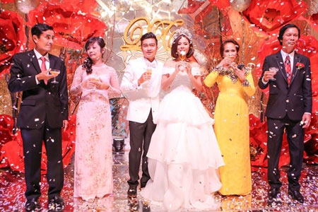 Vợ chồng Vân Trang bên bố mẹ hai bên |